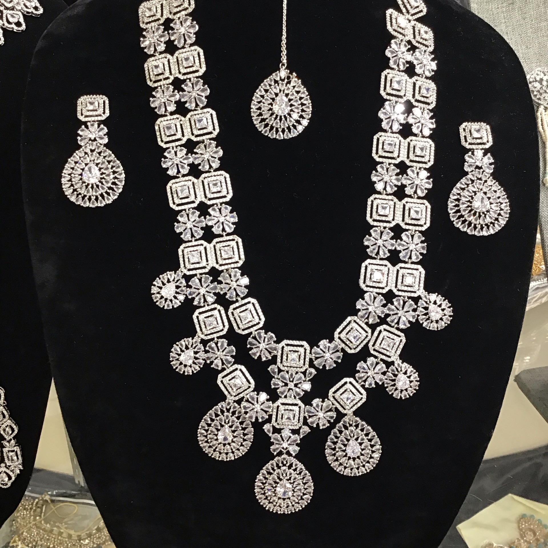 It’s a long CZ long Haar with a pair of earnings and mangtika goes well with ethnic dresses