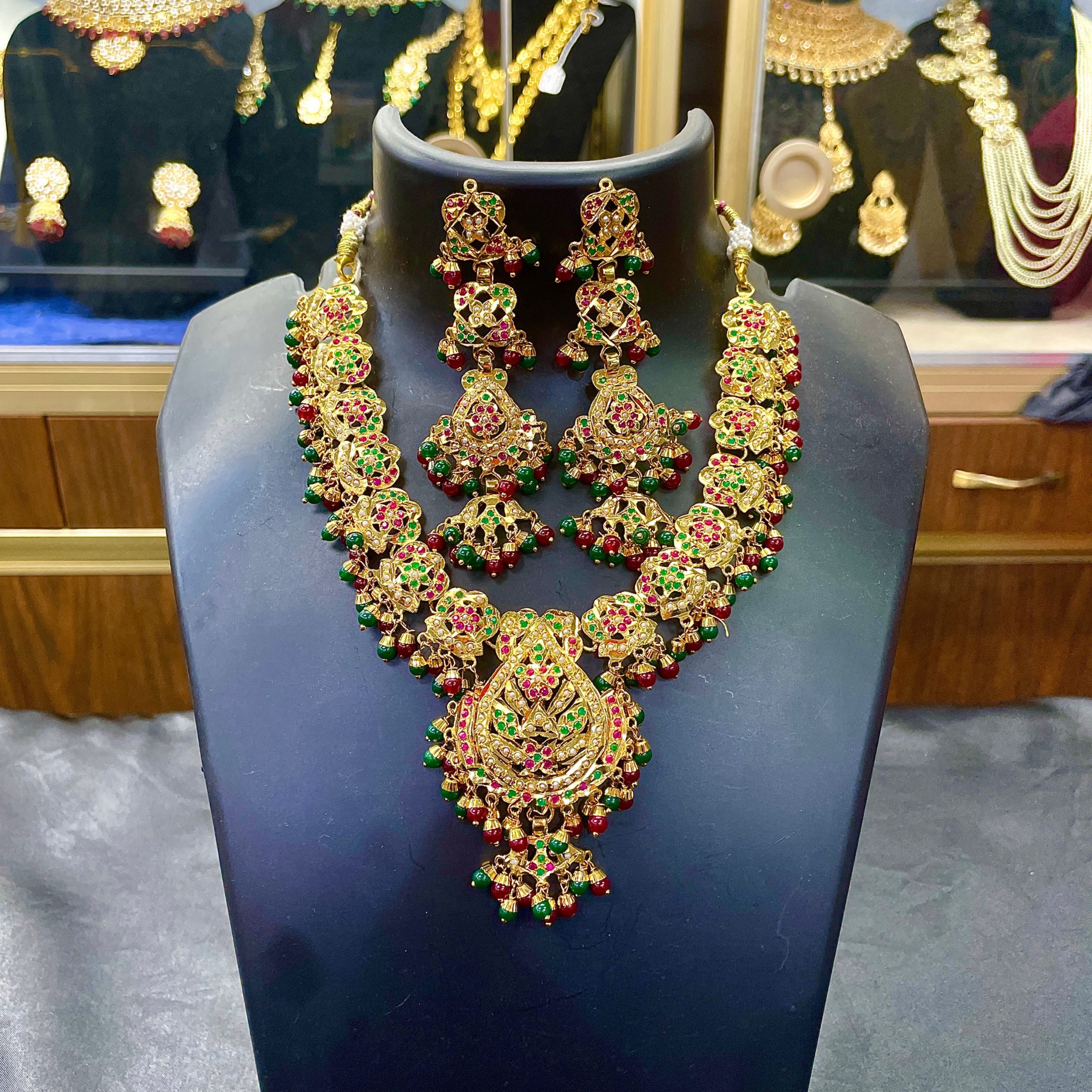 Navratan Necklace with Earrings – Rubies and Emeralds