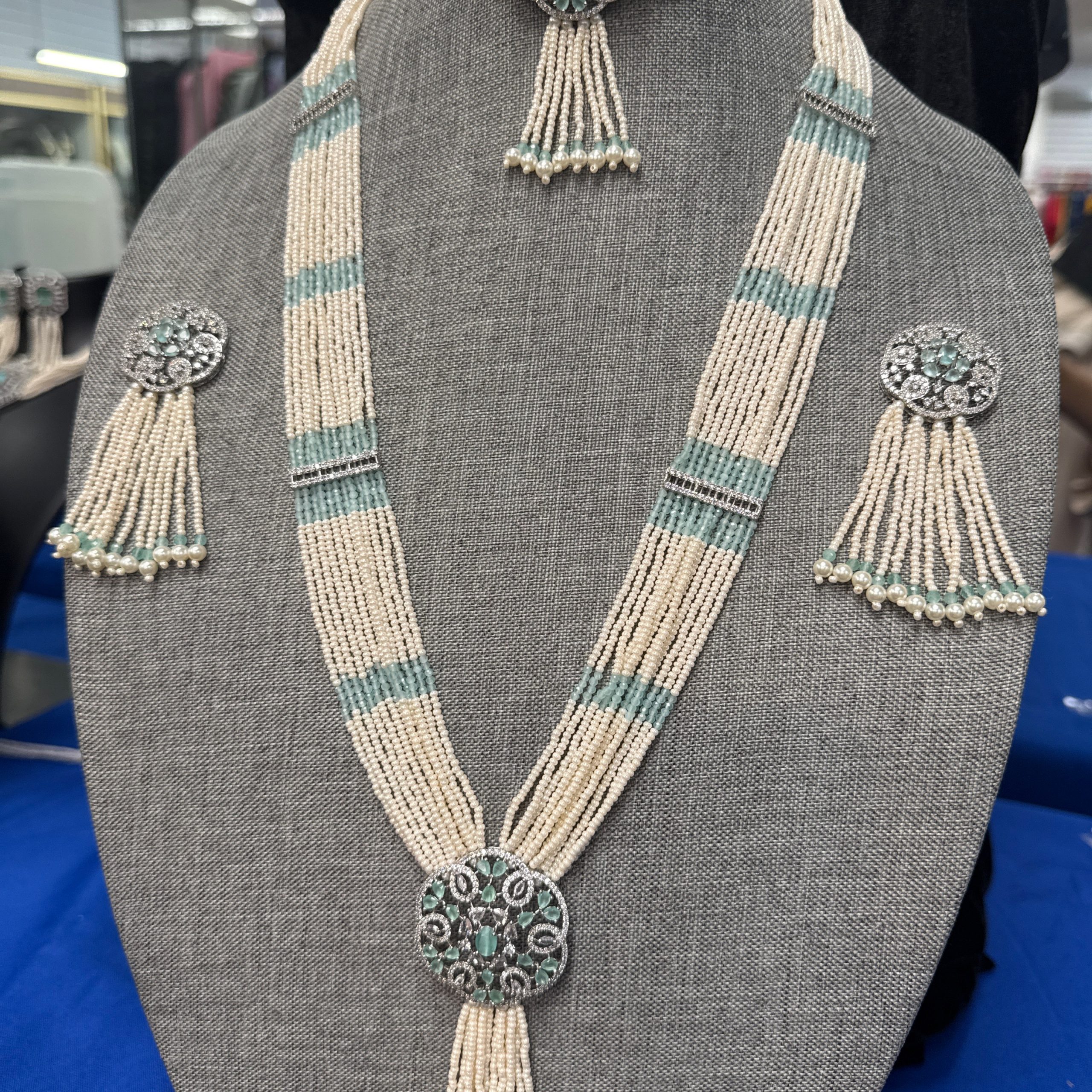Be the first to review “Pearl jewelry set with long necklace and pair of earrings” Cancel reply