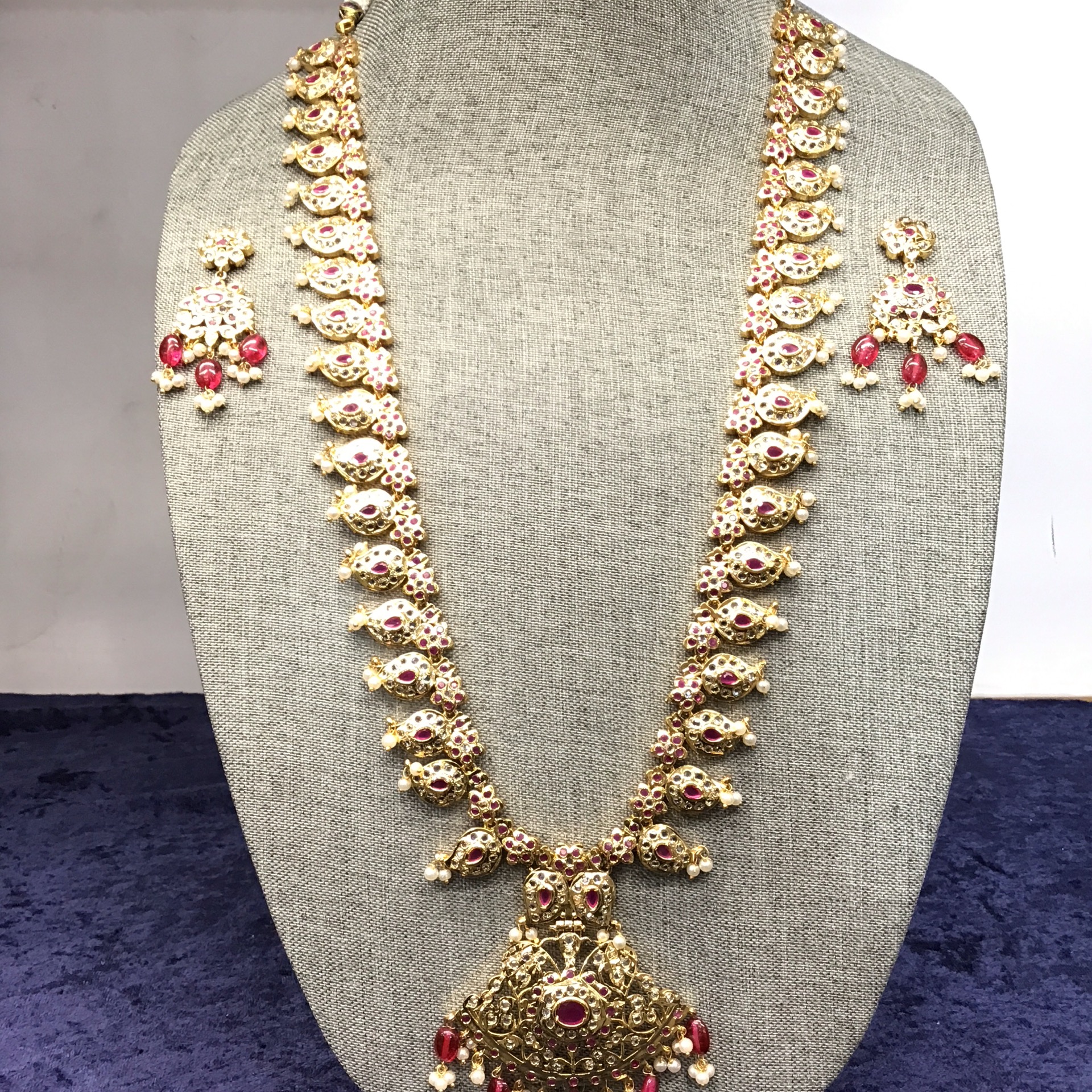Elevate your style with this stunning Ruby Set featuring semi-precious gold accents and a long necklace from Awaze. Make a statement with this elegant jewelry set today!